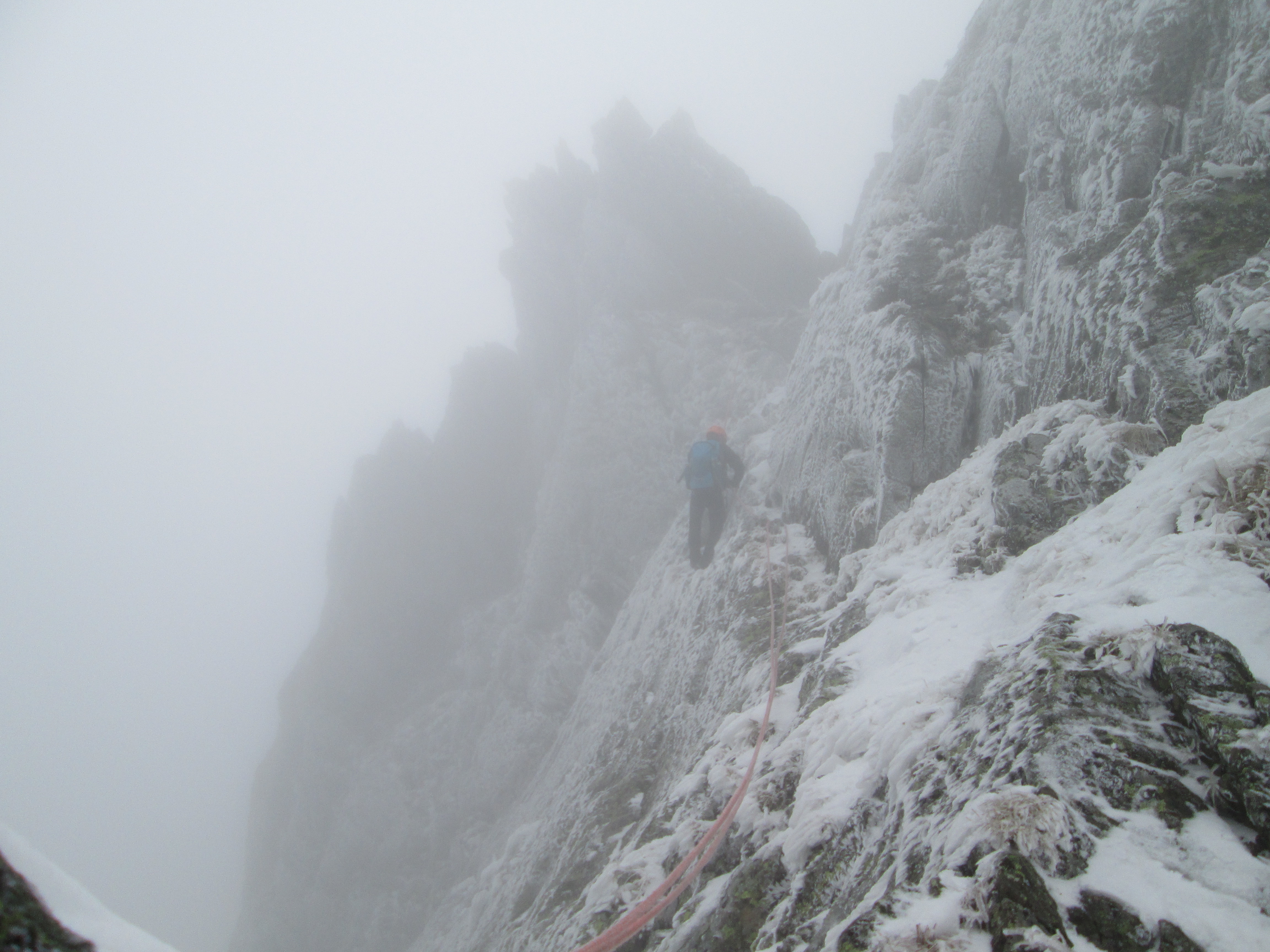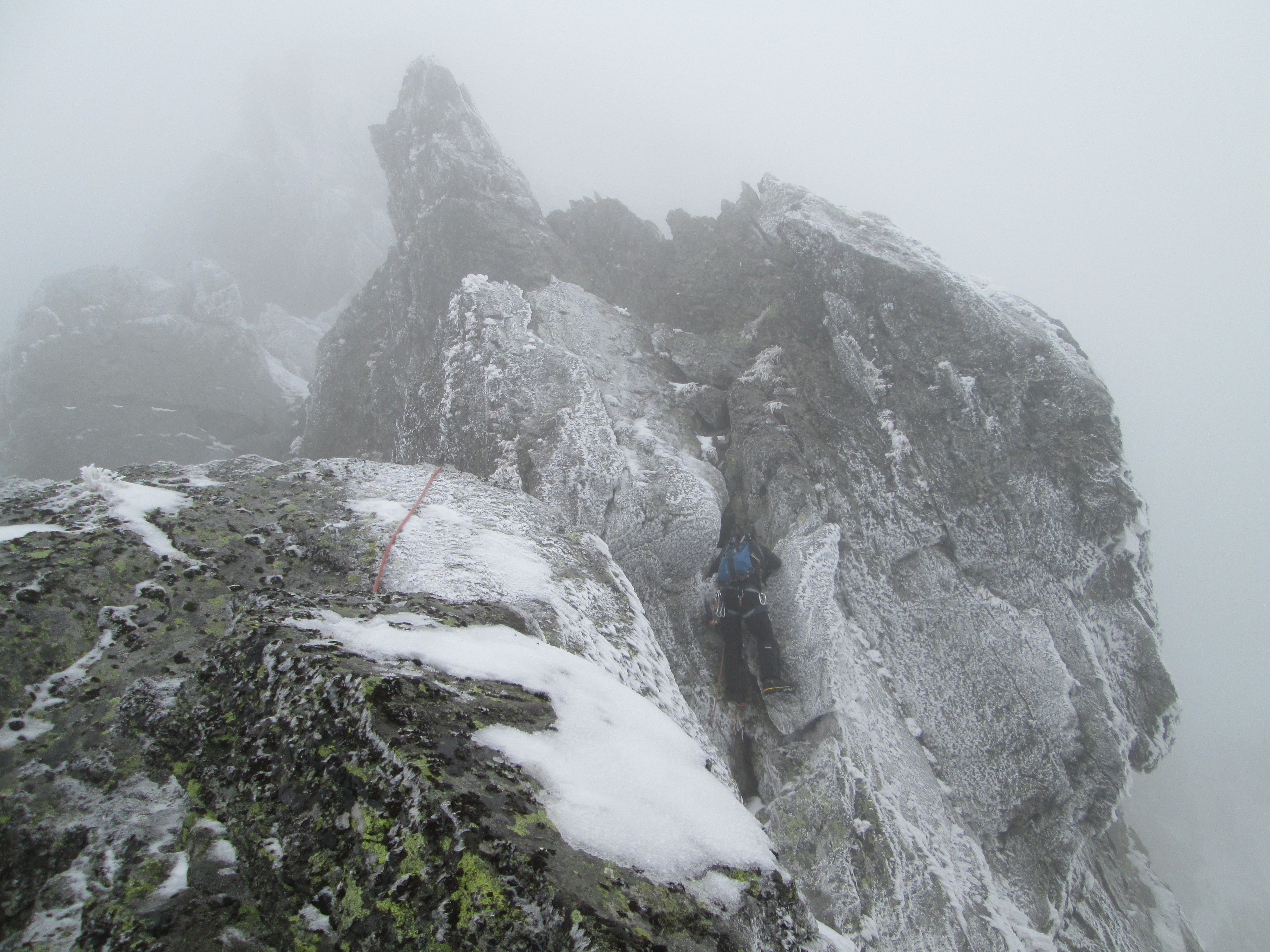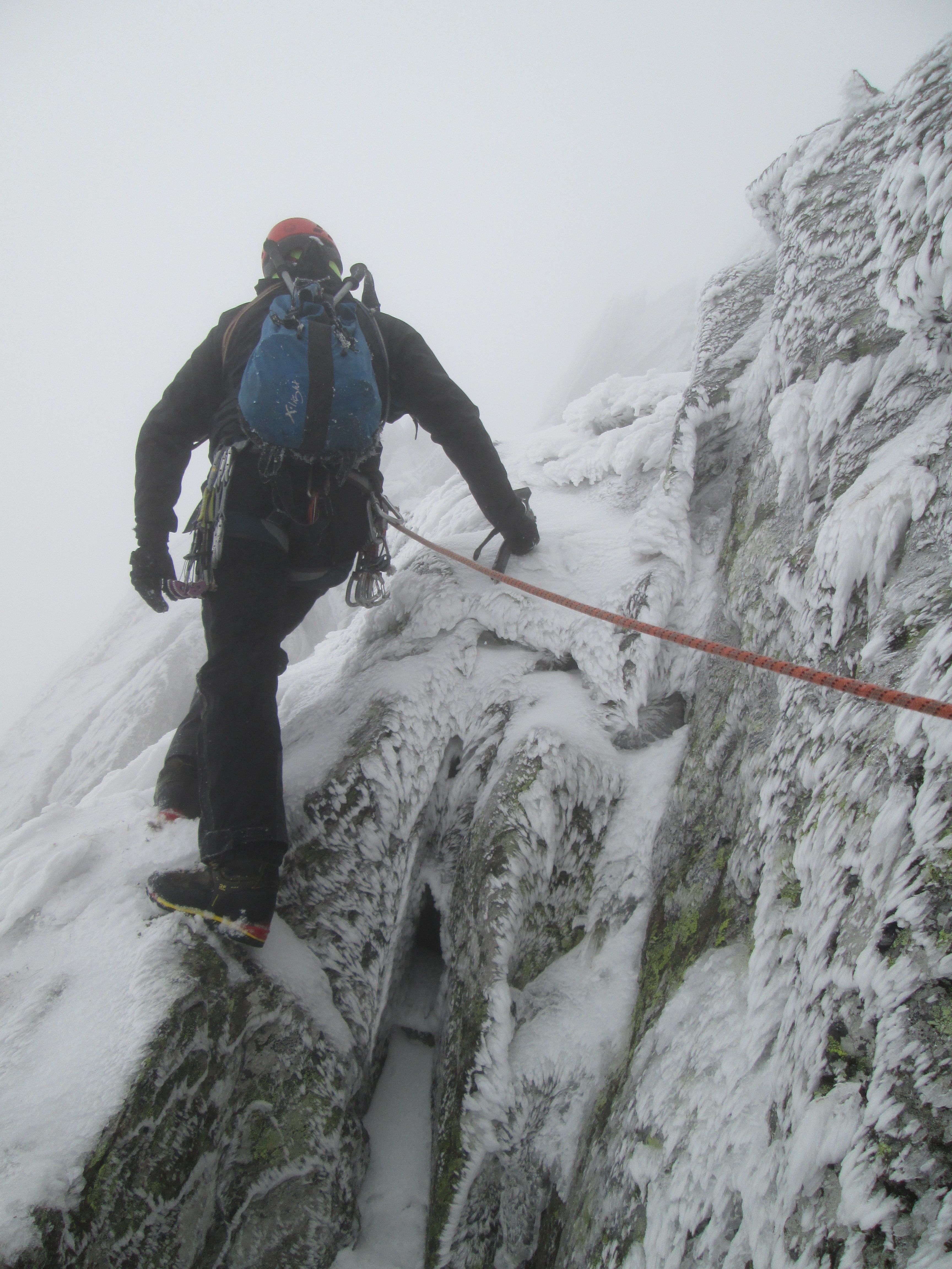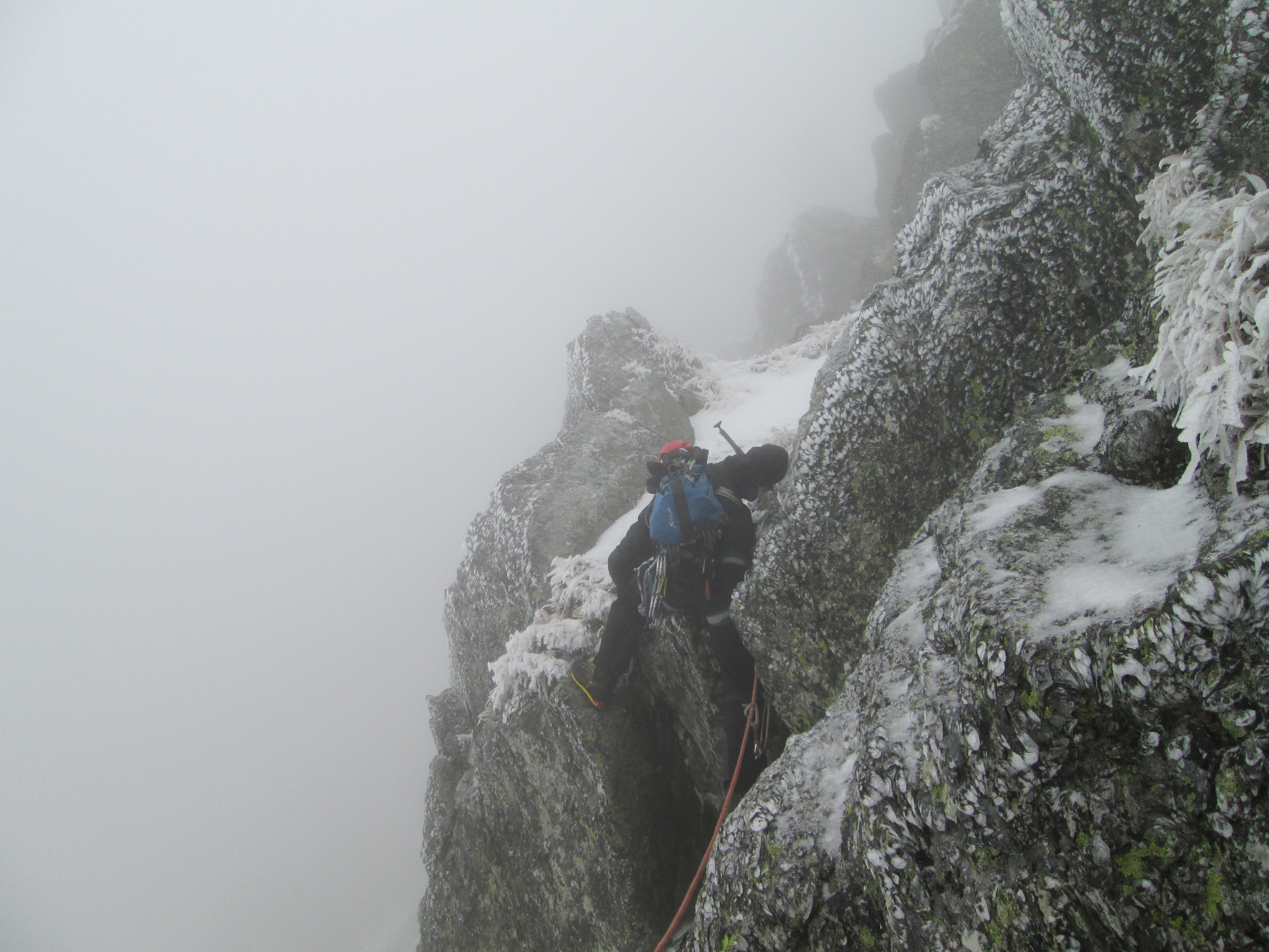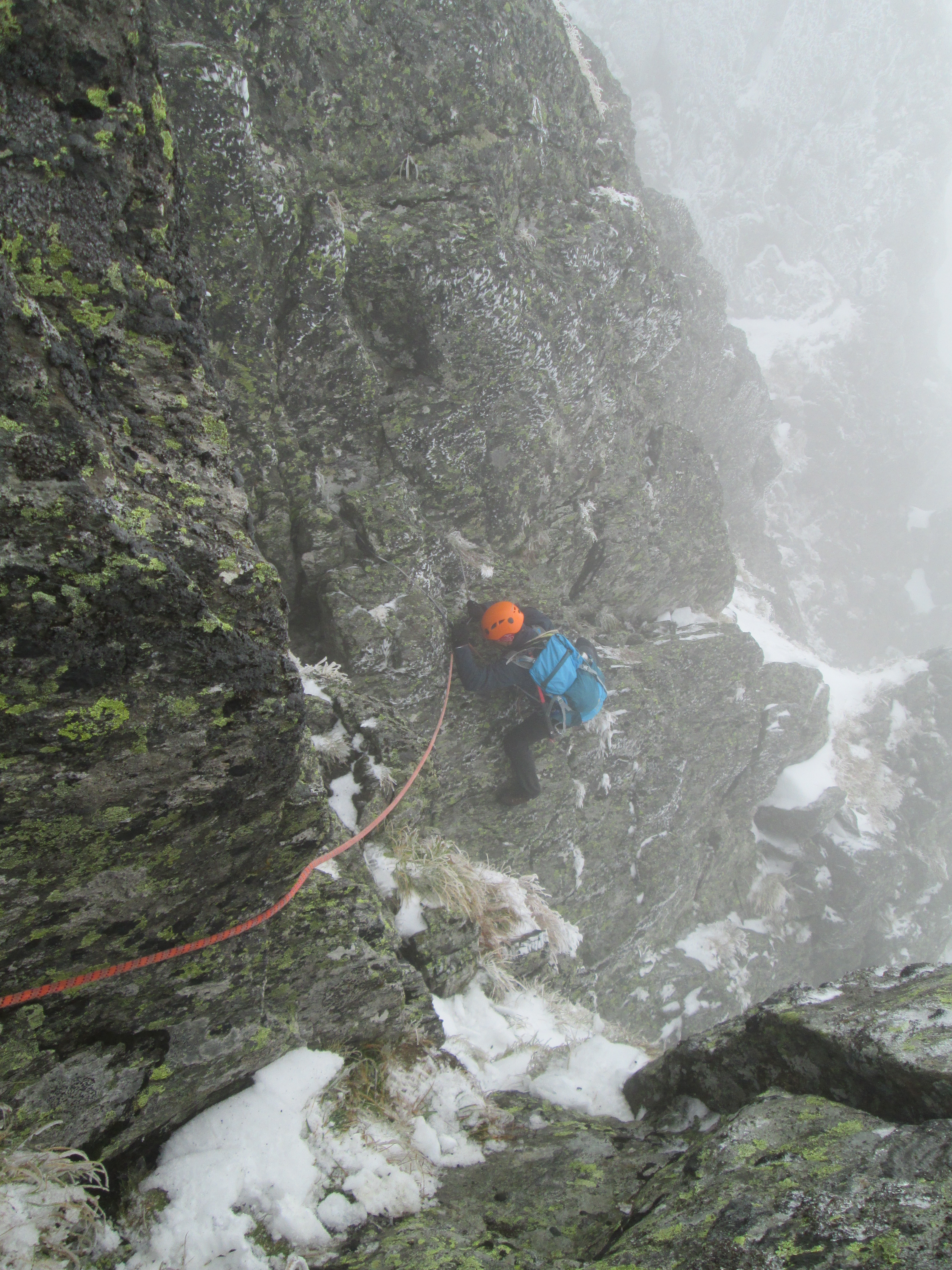 Am mers binisor, experienta ghidului ne-a dat incredere si curaj. Mie unul nu mi-ar fi totuna cu cine urc, am incredere in Marian si nu stiu daca m-as simti linistit sa urc pe rute tehnice cu altcineva. Au fost momente cand nu stiam de ce-mi sunt amortite degetele de la maini, de frig sau de teama (constienta sau nu) la trecerea peste vreun pasaj dificil. Ar fi prins bine coltarii, dar a trebuit sa ne descurcam fara.