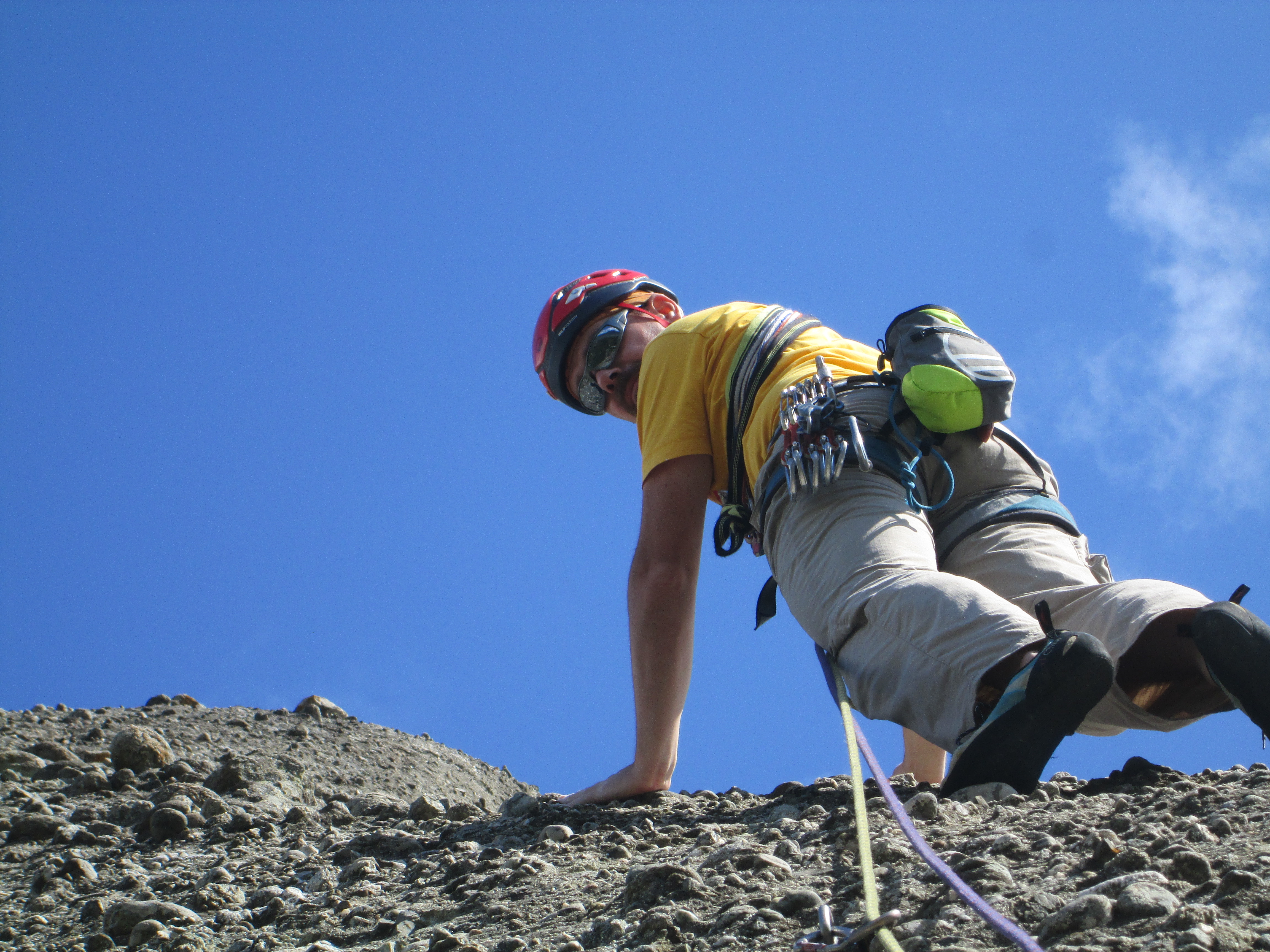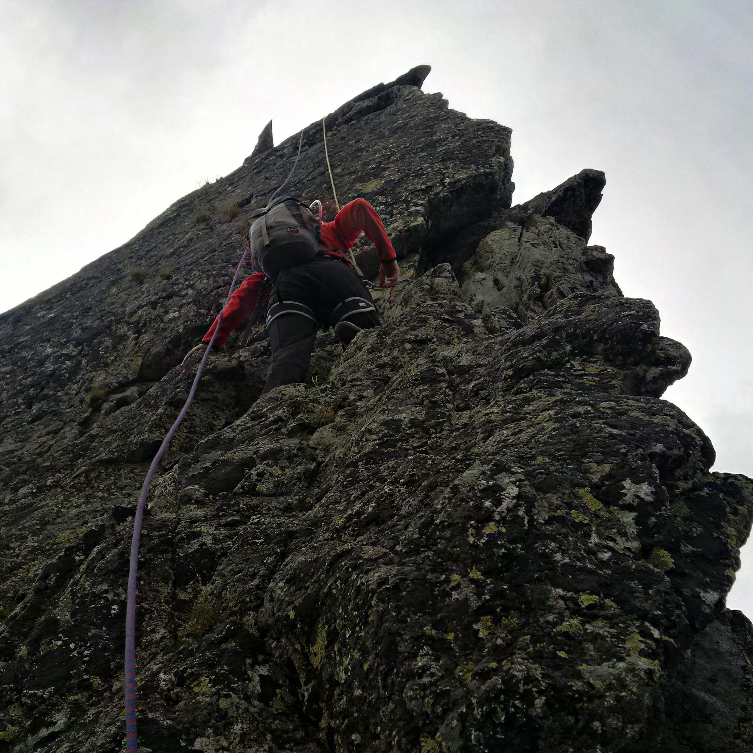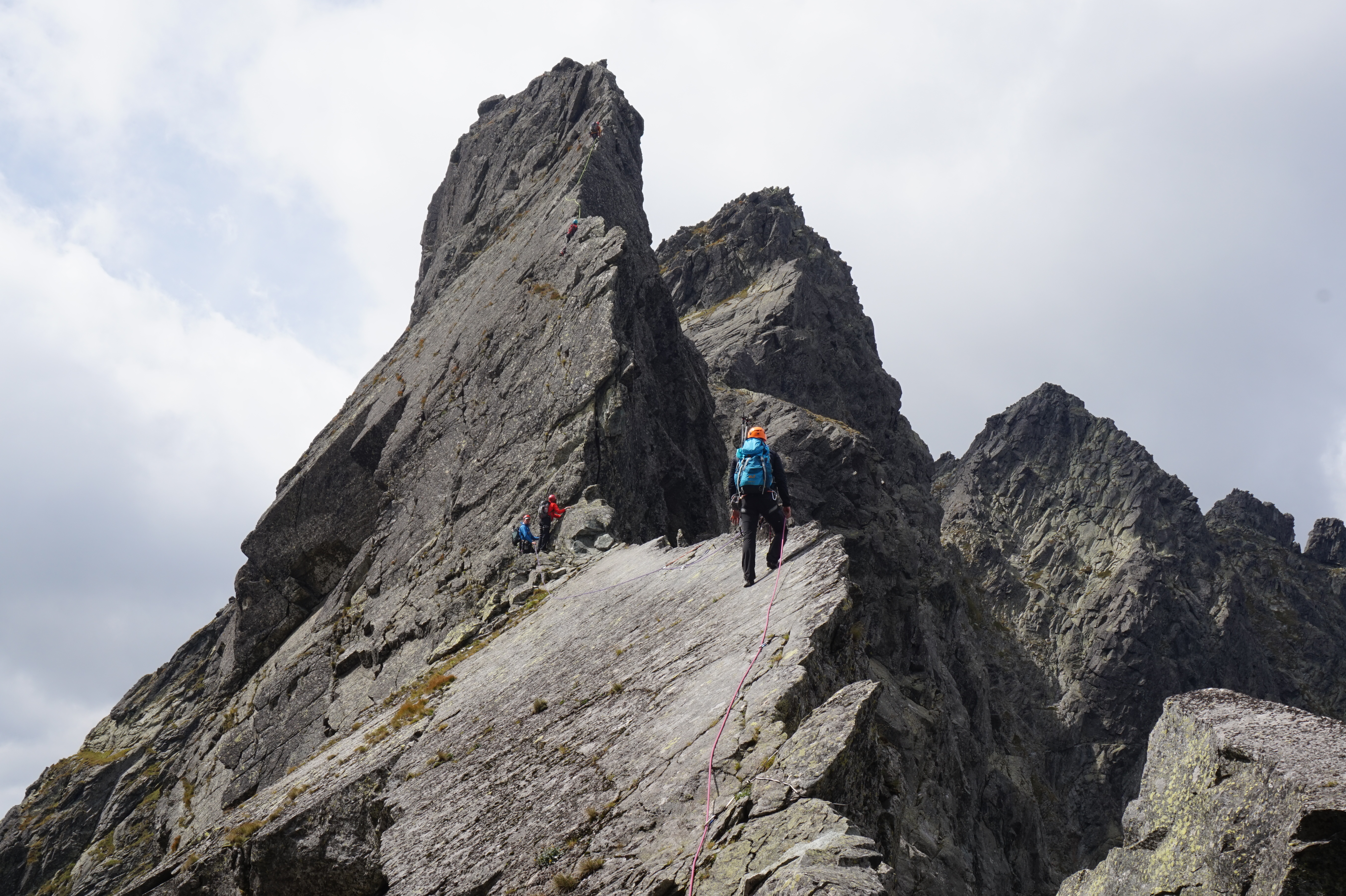 A mers binisor, prinzi curaj si incredere cu fiecare urcare. Dupa aceste urcari de incalzire, am parcurs in fiecare zi trasee de mai multe lungimi de coarda, de diferite dificultati, maxim pasaje de grad V+ ori VI de data asta. Catararea, ramonajul, regruparile, nodurile, asigurarea celorlalti, rapelul devin si mai “interesante” cand te afli la zeci ori sute de metri inaltime. 😀