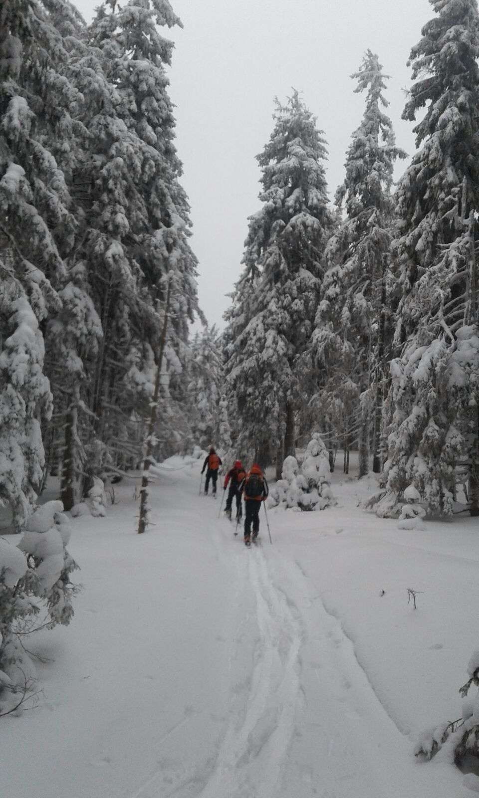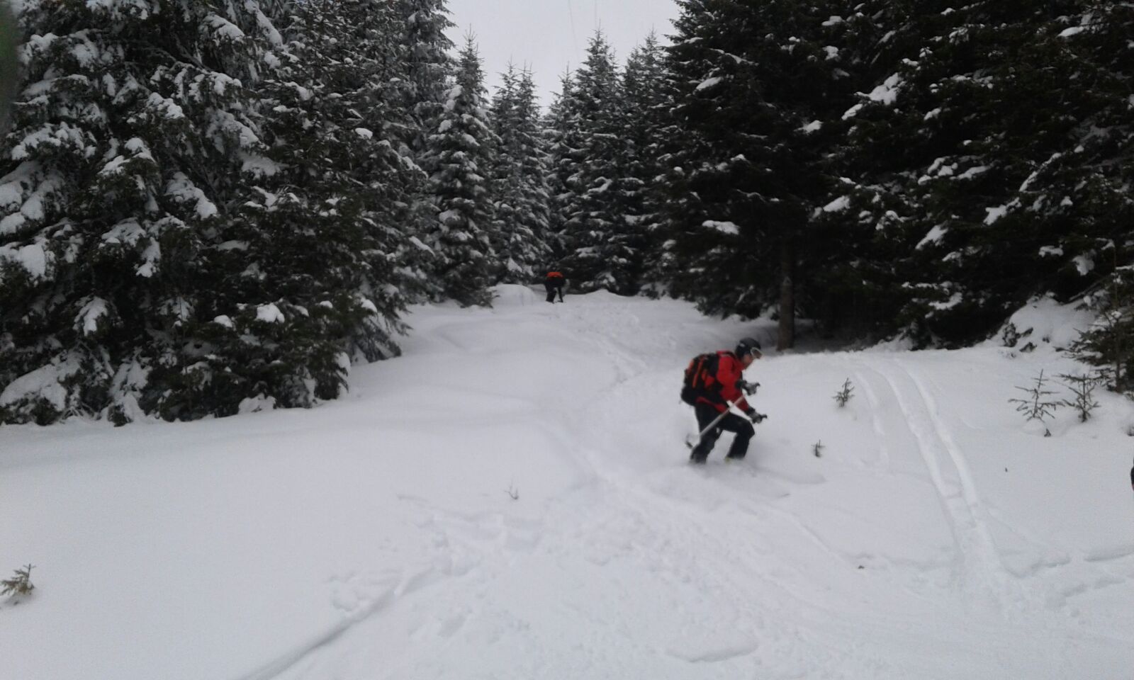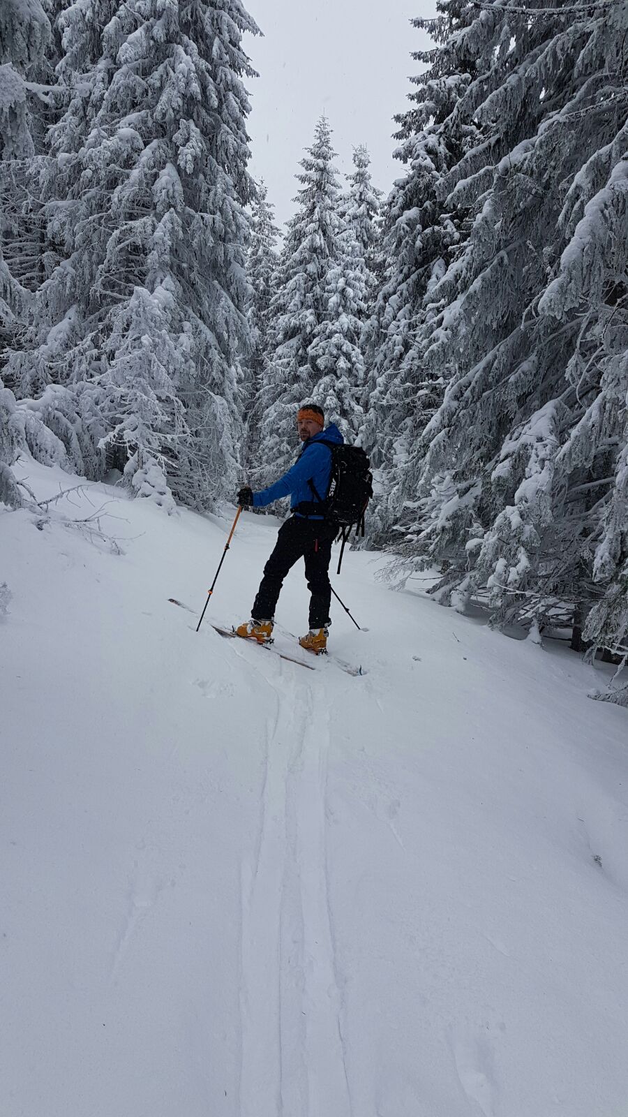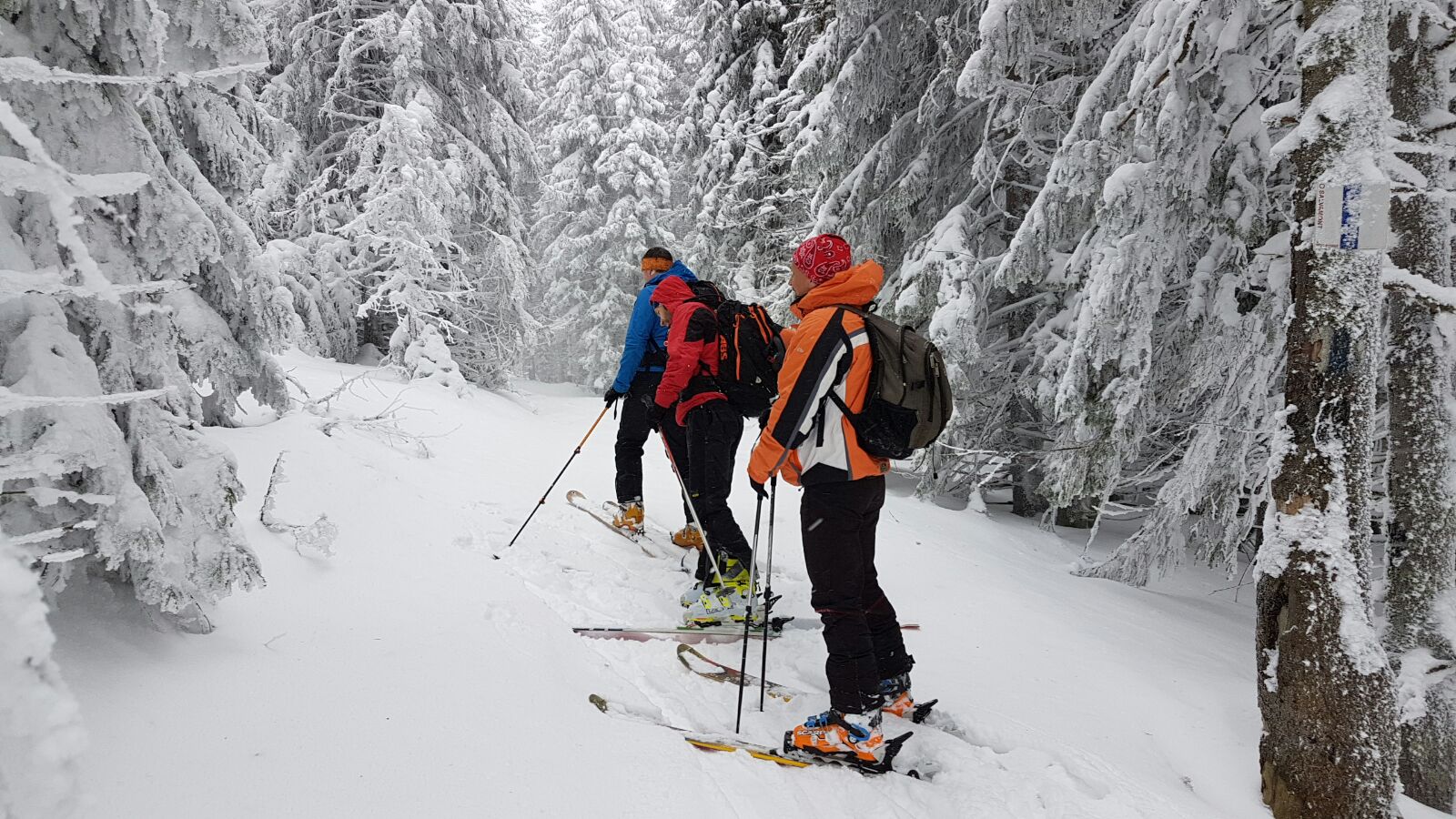 Dupa pauza de la refugiu, unde am putut “admira” si resturile si gunoaiele ramase in spirit traditional de la vechea constructie, am intrat in sfarsit in traseu. Nu era zapada cata ne-am asteptat iar saritoarele erau descoperite. Vremea arata foarte bine, din fericire nu prea se nimerise prognoza, asa ca am urcat in Valcelul cu Fereastra.