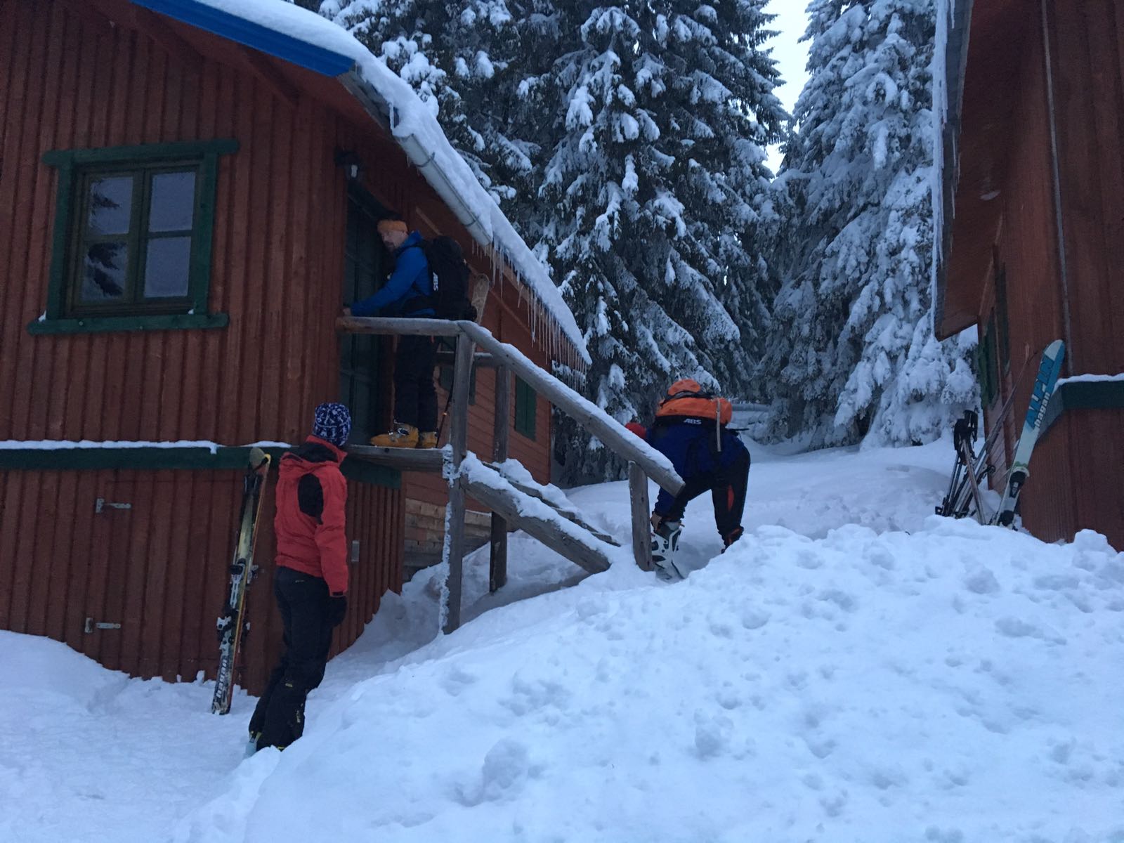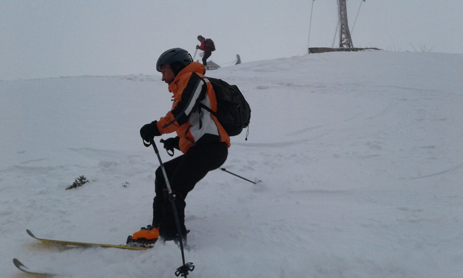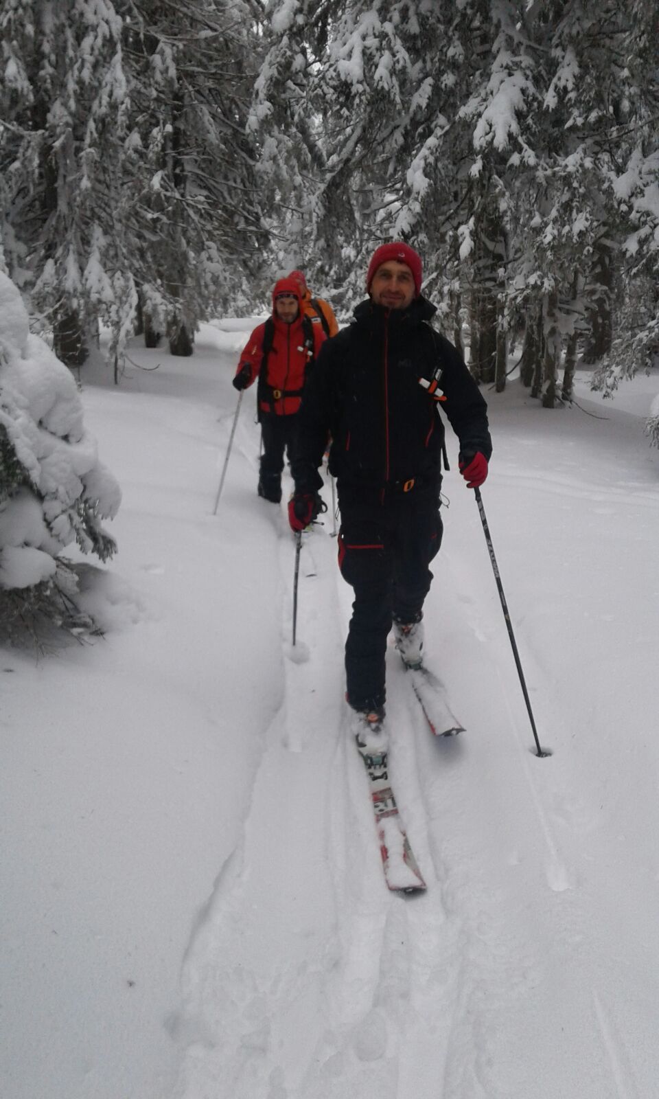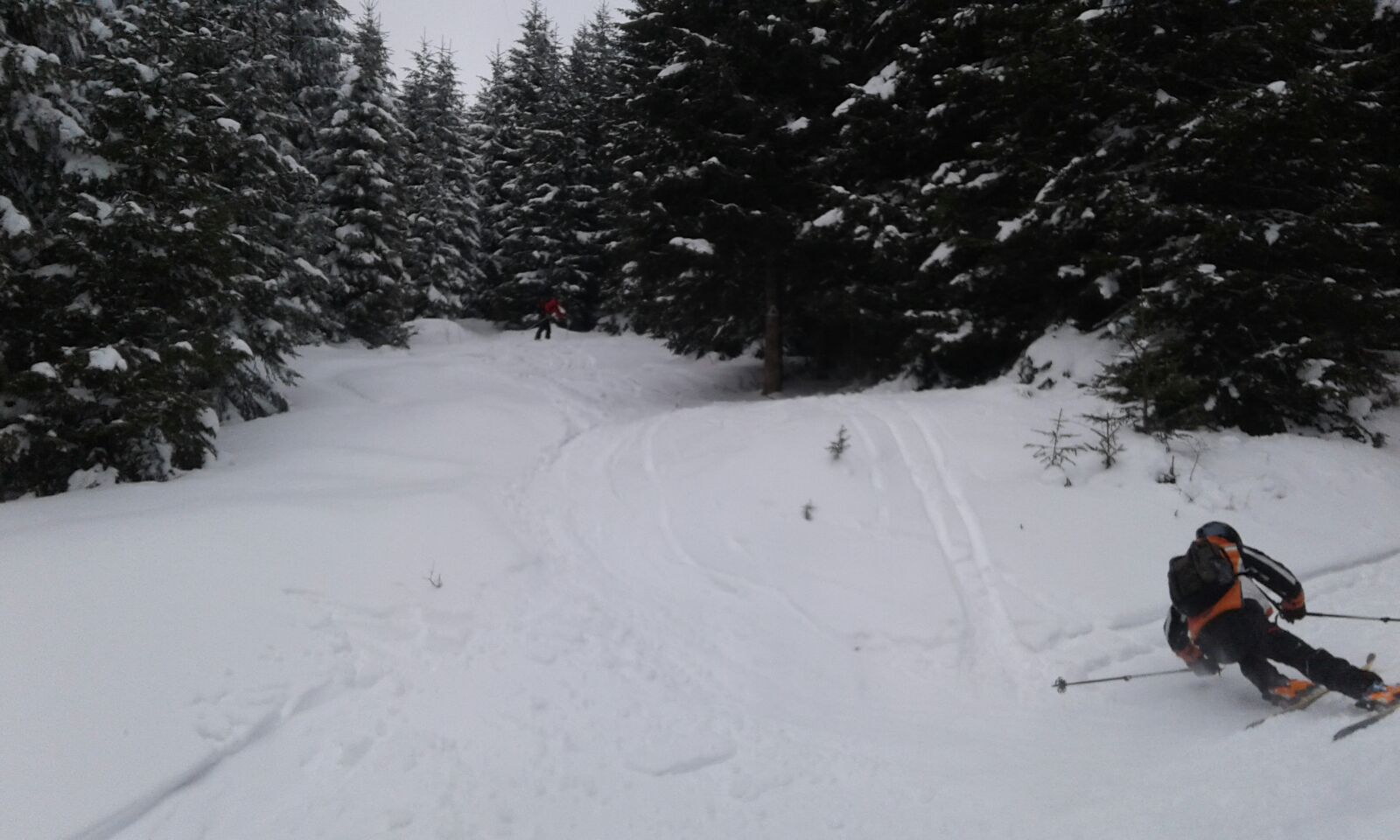 Dupa pauza de la refugiu, unde am putut “admira” si resturile si gunoaiele ramase in spirit traditional de la vechea constructie, am intrat in sfarsit in traseu. Nu era zapada cata ne-am asteptat iar saritoarele erau descoperite. Vremea arata foarte bine, din fericire nu prea se nimerise prognoza, asa ca am urcat in Valcelul cu Fereastra.