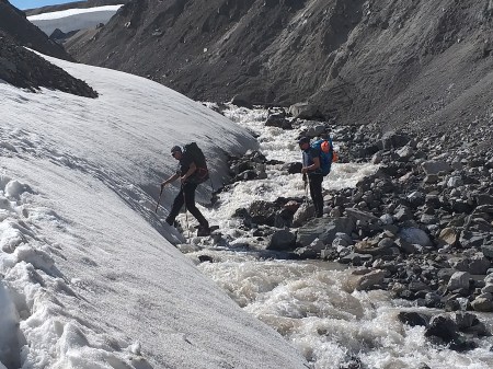 La vale a mers mai repede, intai prin zapada destul de tare pe anumite portiuni, tocmai bine cat sa punem si coltarii, ca sa nu-i fi carat degeaba. Apoi cateva coborari in rapel si ne-am intors la refugiu.