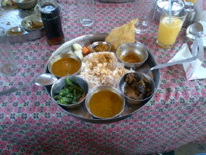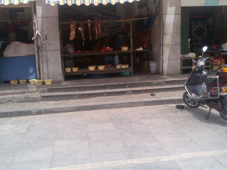 Ne-am oprit sa mancam intr-un sat sau orasel care arata cam ca cele din vestul salbatic, cateva strazi drepte de-a lungul si de-a latul si cladiri cubice tibetane cu maxim un etaj lipite unele de altele.
