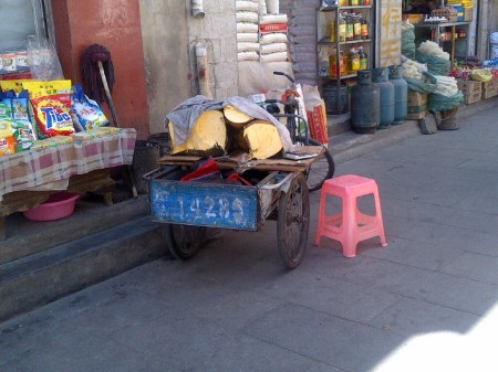 Satui de Lhasa, ne-am coborat bagajele nerabdatori sa plecam insa am dat de prima piedica. Acum cateva zile, chiar dupa ce am ajuns, s-a spart aplica din tavan in baia camarazilor. Au tot anuntat la receptie, au venit, n-au venit, iar au venit dar in final nu se rezolvase nimic. Acum fata care face curatenie a raportat problema si cei de la receptie au pretins ca trebuie platita sticla…50 yuani (8 usd si ceva). S-a produs agitatie acolo, au venit mai multi angajati sa participe la neintelegerea in grup. Intr-un tarziu a venit si managerul care statea cu sticla in mana si se mira scotand sunete guturale…stiti voi cum fac asiaticii.