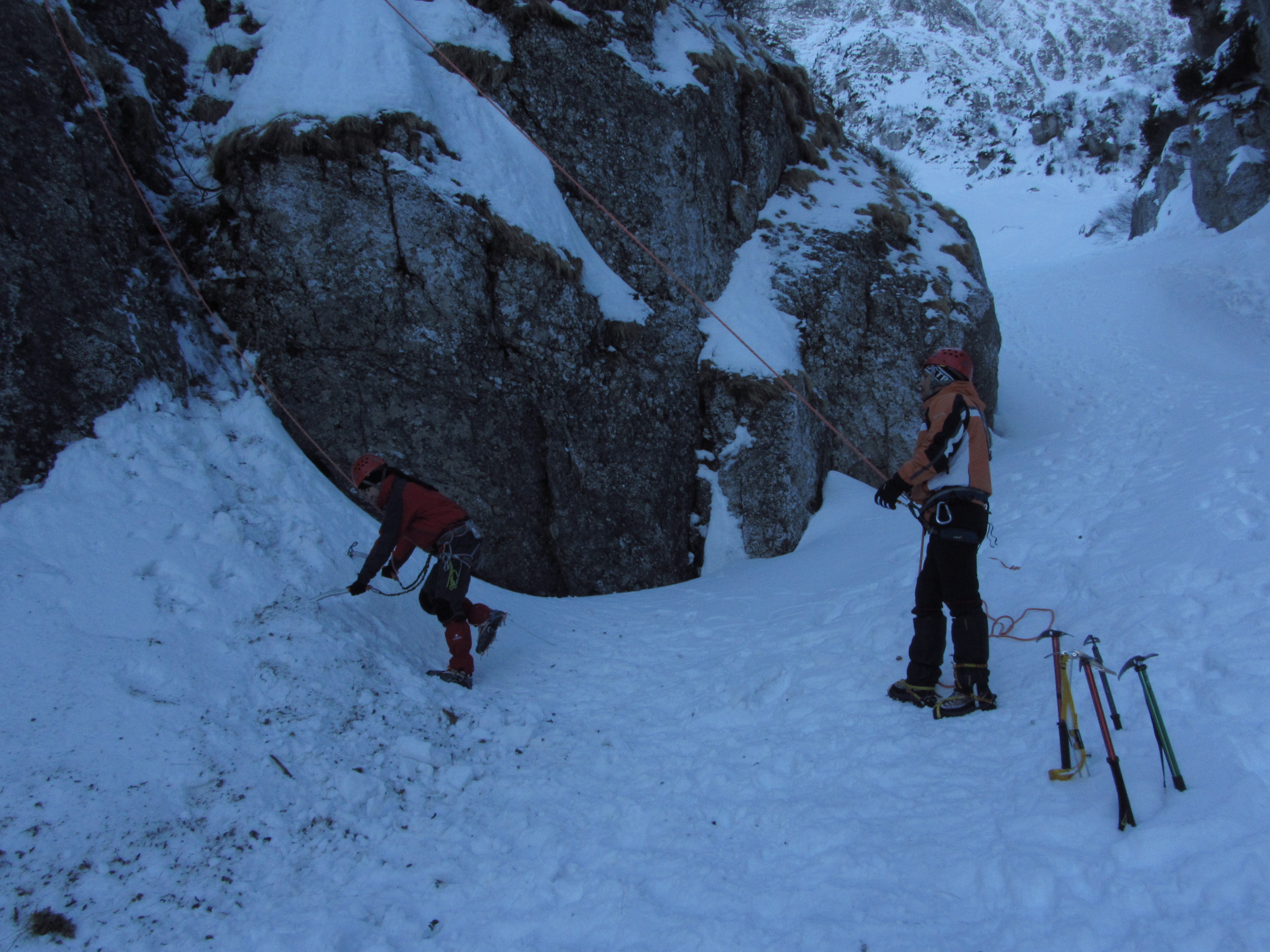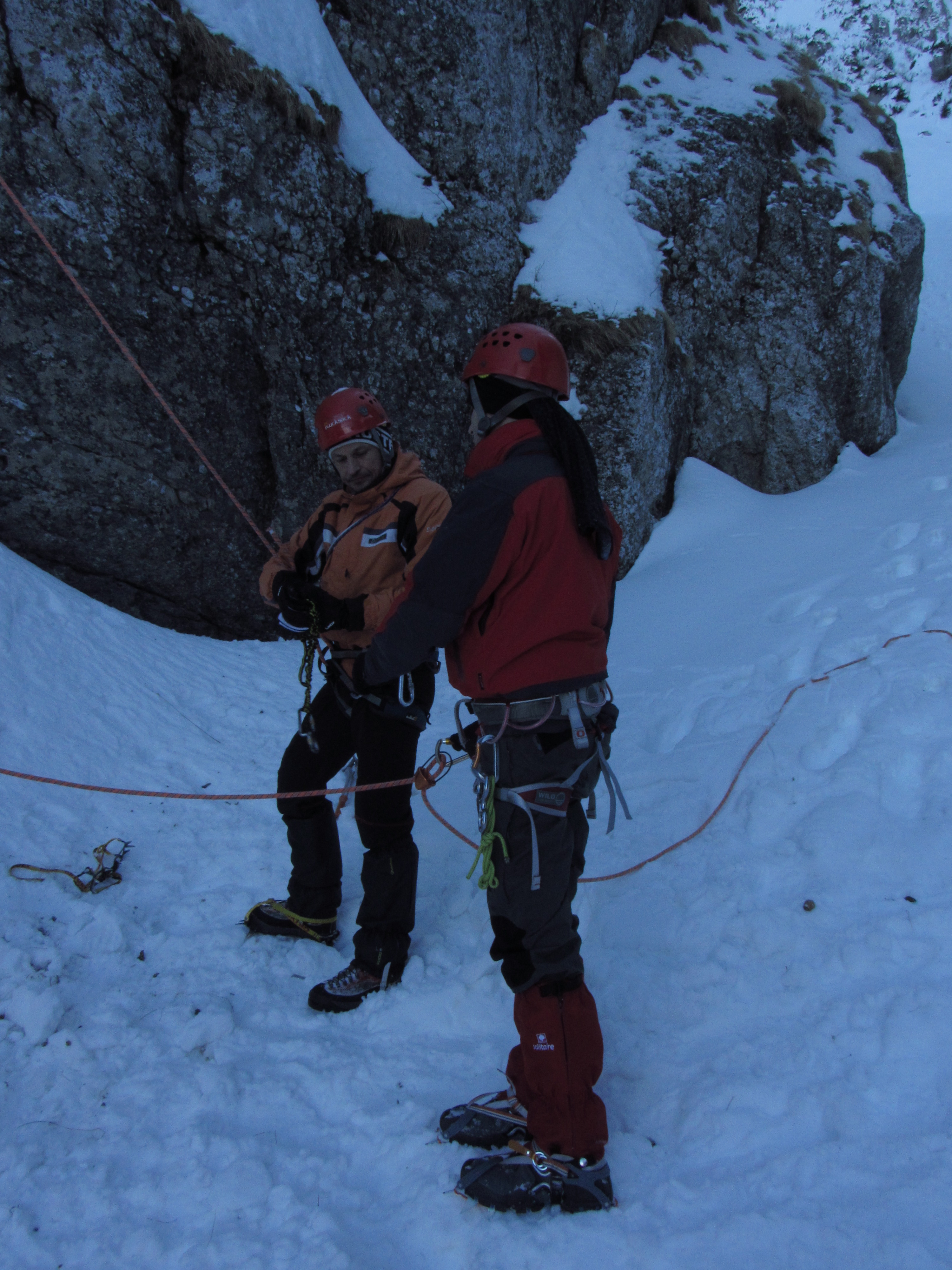 S-a intunecat pana ne-am intors la corturi, tocmai bine pentru partea de discutii teoretice. Dar stiam ca vom folosi timpul la maxim, asa ca am dardait putin de frig si am facut noduri pe intuneric cat am povestit tot felul de lucruri legate de catare si nu numai.